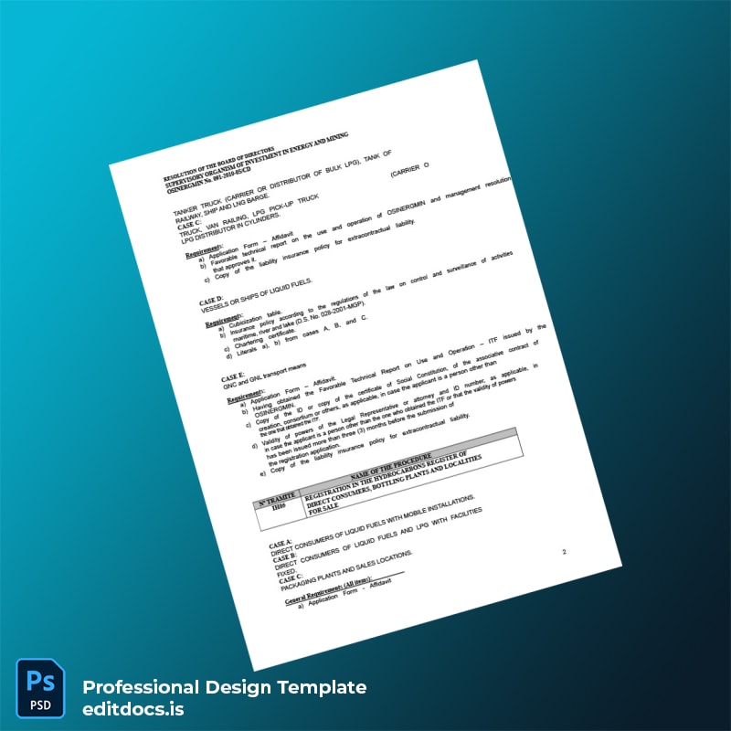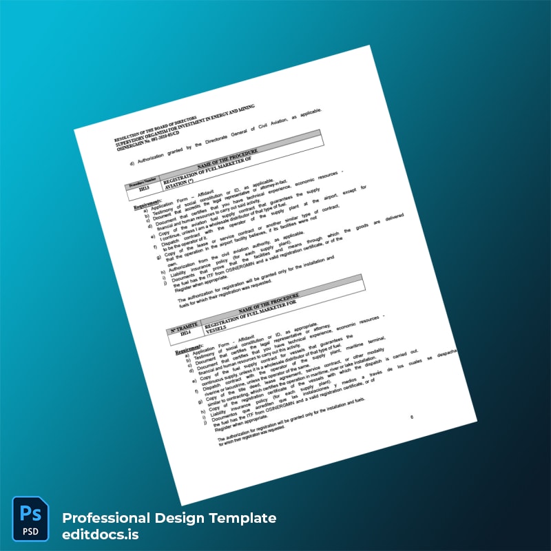 Managing regulatory documentation can be complex, especially when you need a reliable, editable template for Peru OSINERGMIN Hydrocarbons Registration Requirements. Our Peru OSINERGMIN Hydrocarbons Registration Requirements Template in Word and PDF formats simplifies the process by providing a comprehensive, easy-to-customize solution tailored for professionals in the energy and hydrocarbons sector.