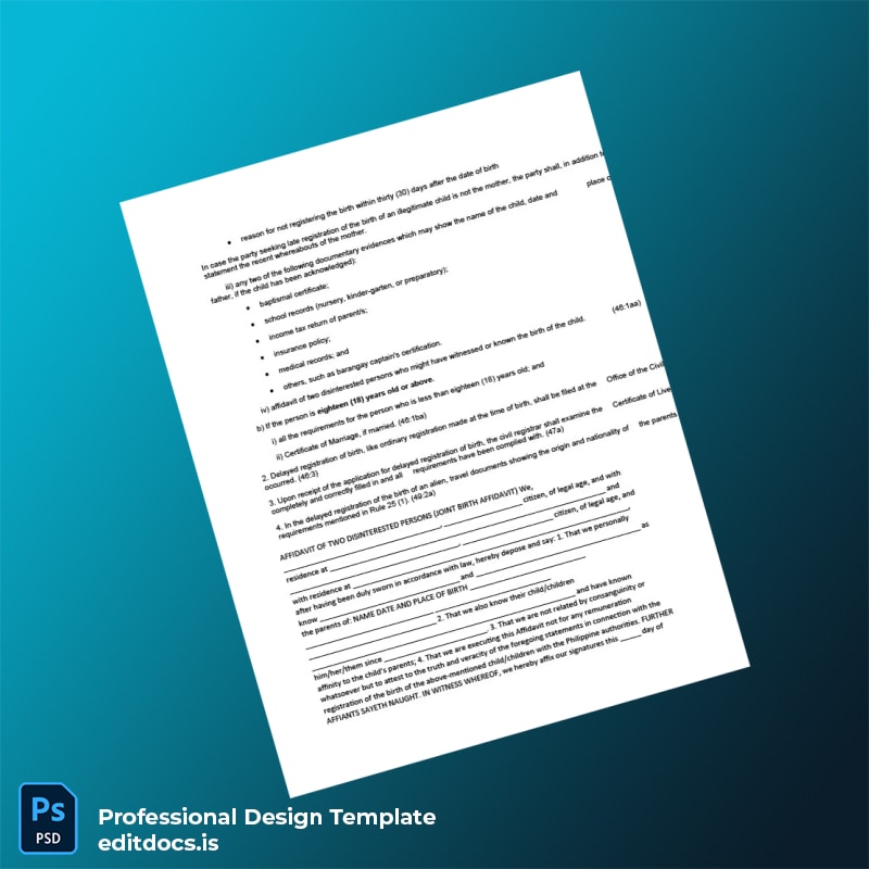 Be the first to review “Editable Philippines Civil Registrar Delayed Registration Birth Certificate Template (Word & PDF) 3 page”