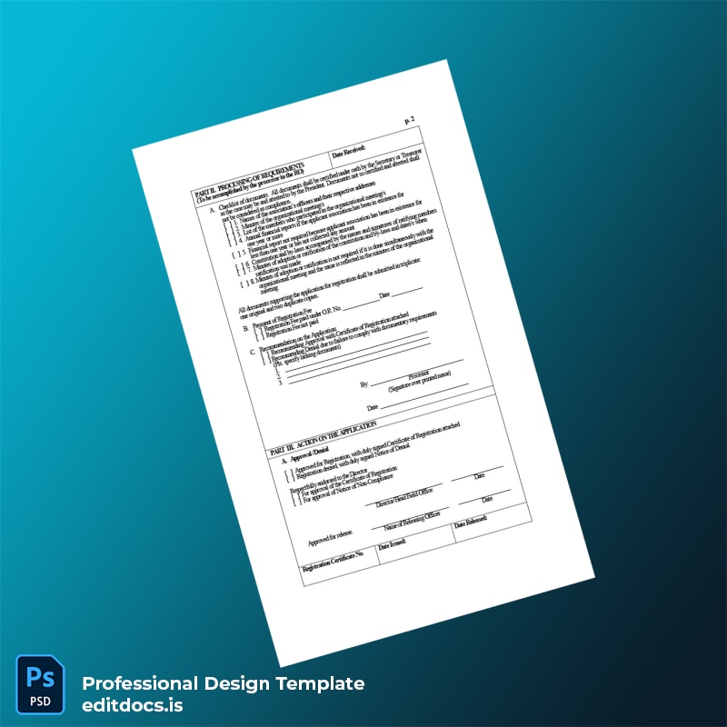 This registration certificate template is crafted for entrepreneurs, HR managers, and consultants who need immediate access to an official-looking, fully customizable document for compliance, verification, or record-keeping purposes. It addresses critical pain points such as lost or damaged certificates, expired registrations, and cumbersome bureaucratic processes, providing a professional, practical solution.