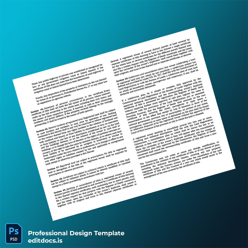 This editable Philippines Land Registration Authority Decree of Registration and Certificate of Title template in Word and PDF formats offers a streamlined, professional solution designed for legal professionals, property managers, and business owners who need quick and accurate document reproduction.