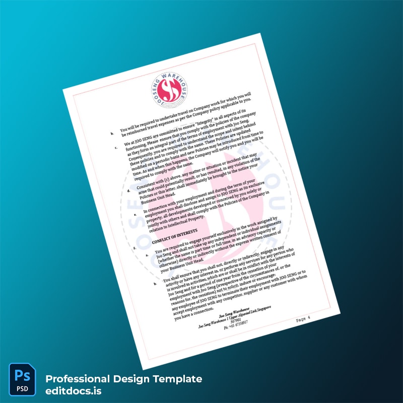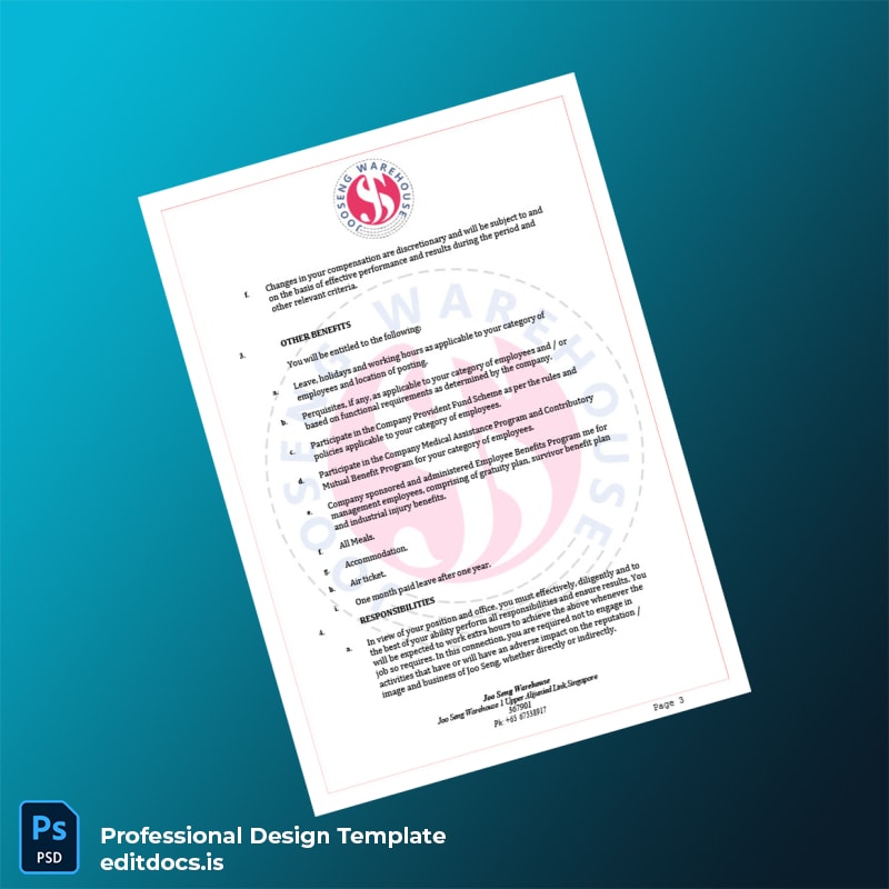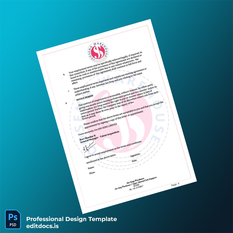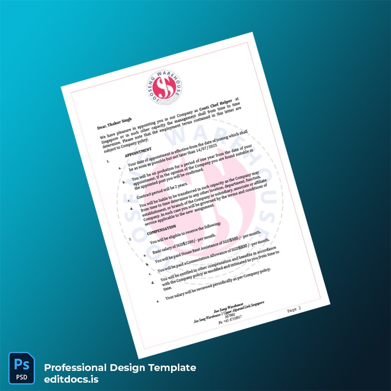 Editable Singapore Joo Seng Warehouse Employment Verification Letter Template (Word & PDF) 7 page
