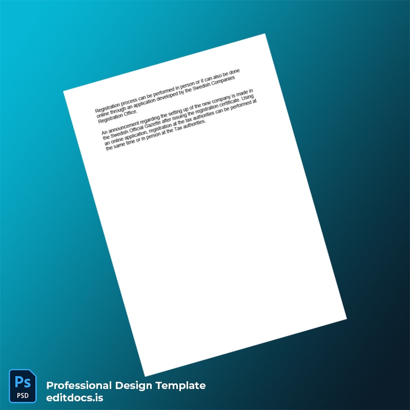 - Pre-Formatted Layout: The certificate layout follows Sweden’s business registration standards, minimizing error risk and ensuring professional appearance.
