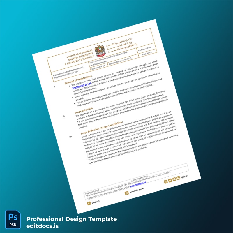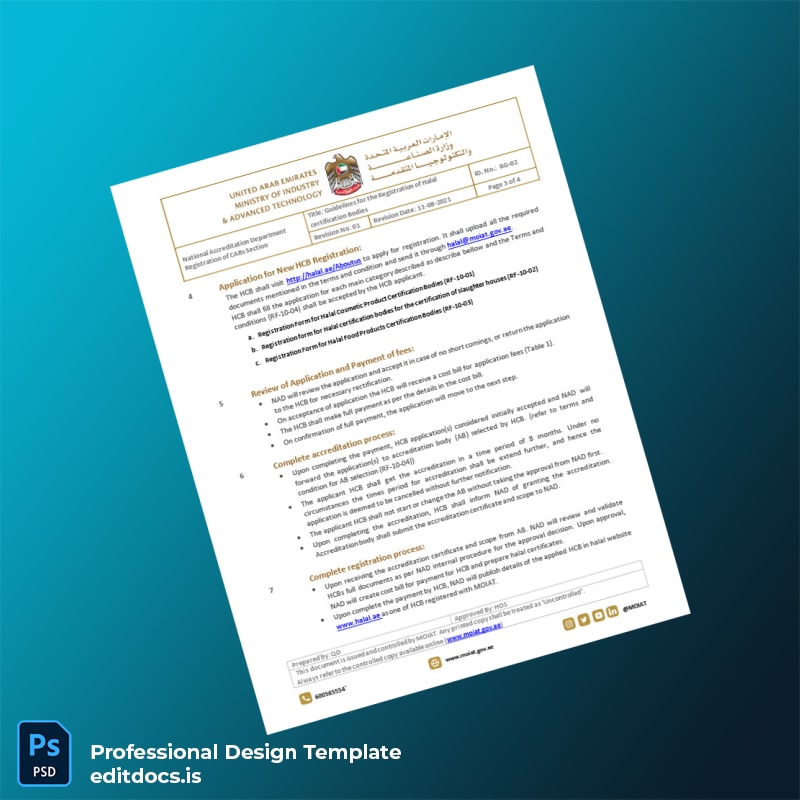 Streamline your certification process effortlessly with the Editable UAE Ministry of Industry and Advanced Technology Halal Certification Body Registration Guidelines Template in Word and PDF format. Designed for businesses needing a professional and compliant company registration form, this dual-format template perfectly balances usability with official standards.