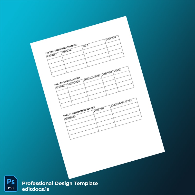 This template is ideal for registered practitioners, healthcare administrators, and legal consultants who require a hassle-free way to update their registration certificates. Whether you’ve recently changed your practice address, expanded your services, or need a replacement due to document loss, this editable registration form template ensures your compliance remains intact.