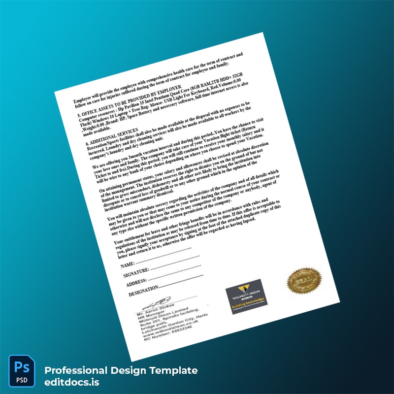 • Designed for high resolution ensuring your certificate of employment template looks sharp and official when printed or shared digitally.