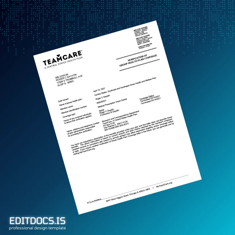 Editable United States TeamCare Employment Verification Letter Word and PDF Template is easy to edit & fast to customize for professional employment verification letters.