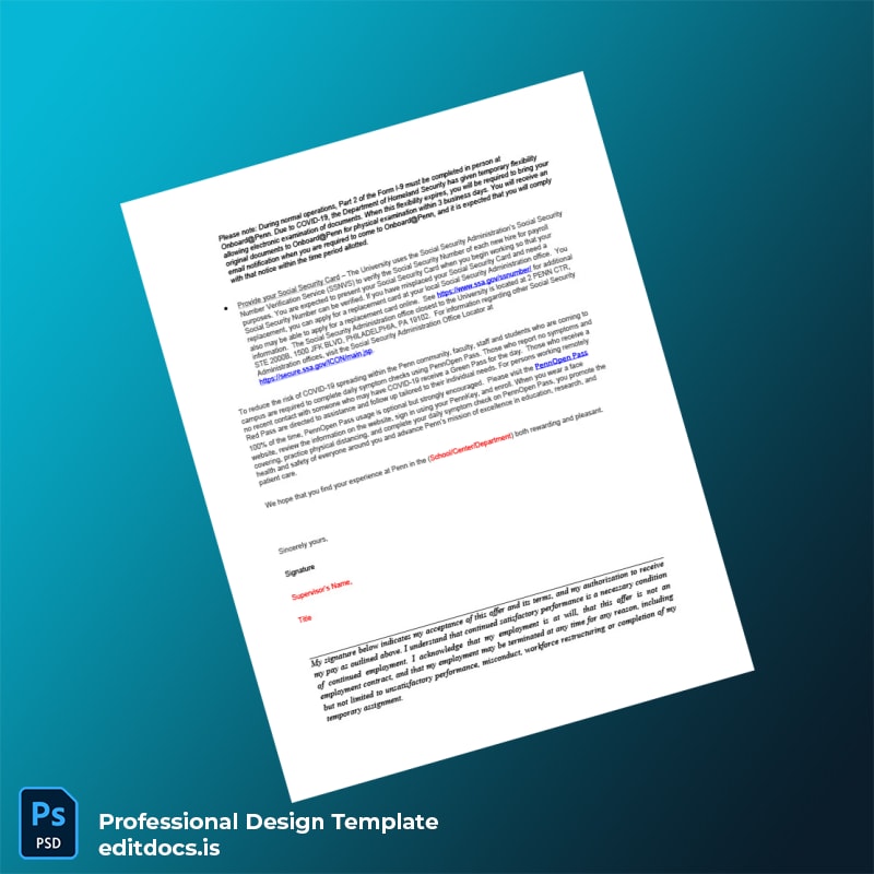 Our template maintains high-resolution formatting suitable for both digital use and professional printing. Including all necessary fonts and layout elements, it ensures your employment verification letter or job confirmation maintains a polished and credible appearance, vital for official documentation. The download is instant upon purchase, enabling immediate access whenever urgent hires demand prompt action.
