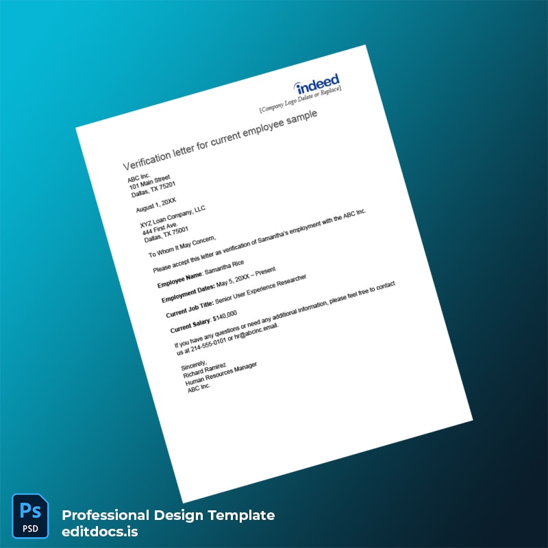 Take control of your employment verification process with this editable template. Whether you need to confirm employment for loan applications, legal verifications, or HR records, this document ensures accuracy and professionalism with minimal effort. Download your Editable USA XYZ Loan Company LLC Employment Verification Letter Word and PDF Template now and experience the convenience of quick text, field, and layout customization.