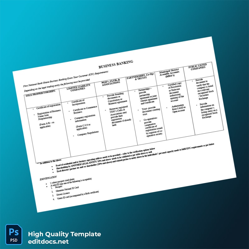 Ghana First National Bank Ghana Editable KYC Requirements Template Overview