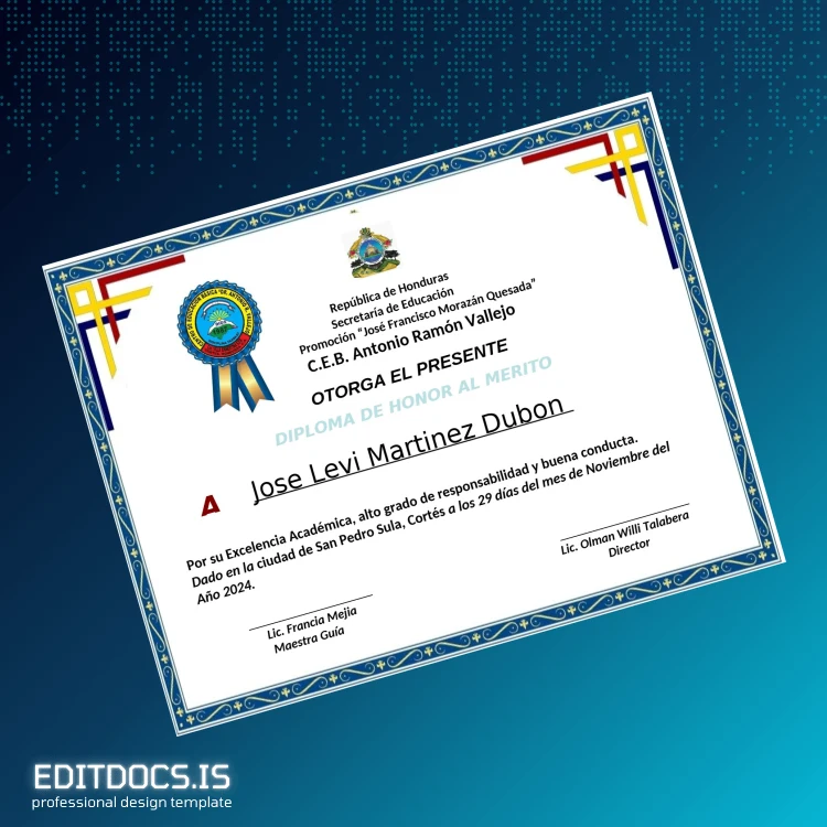 How to Create Your Honduras C.E.B. Antonio Ramón Vallejo Honorary Diploma Template (Word & PDF) in Minutes
