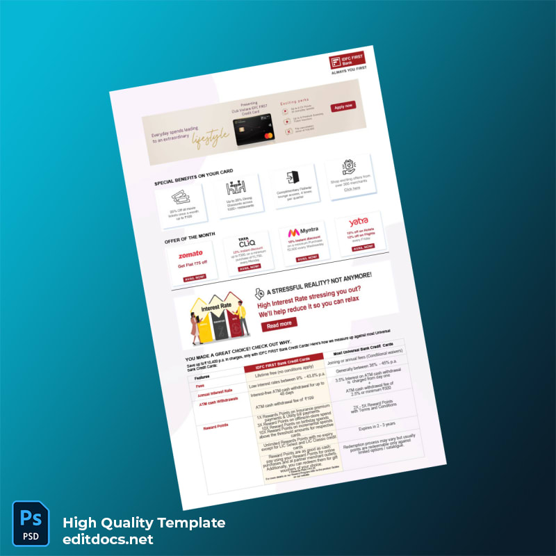 Don’t let missing or outdated paperwork hinder your professional tasks. Choose the India IDFC FIRST Bank Editable Bank Statement Template, a trusted and practical utility bill PDF file download designed for ease and accuracy. Gain complete control over your documentation with this premium editable utility bill template word and PDF. For further needs, consider browsing the utility bill template collection to complement your document solutions. Download now and streamline your proof of address requirements instantly.