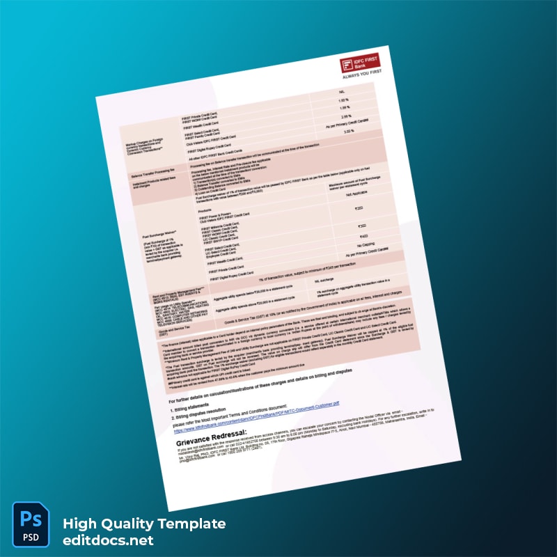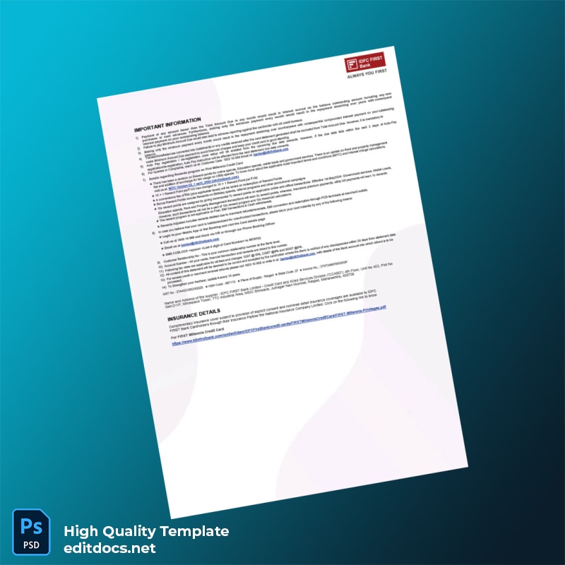 Discover a versatile and professional solution to recreate your bank statements quickly and accurately with the India IDFC FIRST Bank Editable Bank Statement Template. Available in both Word and PDF formats, this utility bill proof of address template is designed to meet the needs of professionals seeking a reliable editable utility bill template PDF and Word file for official and personal documentation purposes.