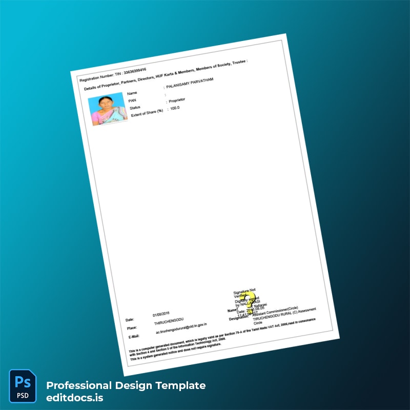 Streamline Your Business Registration with India Tamil Nadu Commercial Registration Certificate Template (Word & PDF)