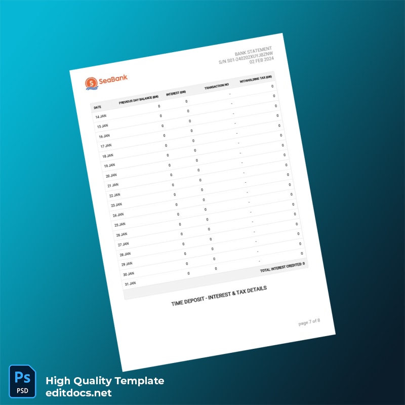 Indonesia Seabank Statement Template in Word and PDF formats 8 page
