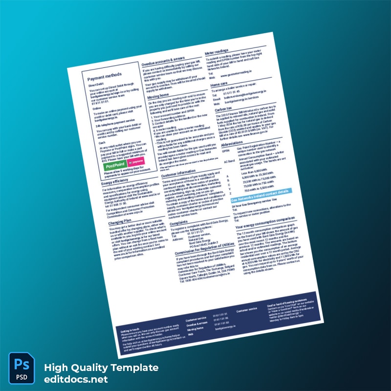 Introducing the Ireland Bord G Is Energy Limited Editable Utility Bill Template, available in both Word and PDF formats. This reliable and customizable utility bill template serves as a perfect utility bill proof of address template, designed for professionals who require a quick, authentic-looking replacement or proof document without hassle.