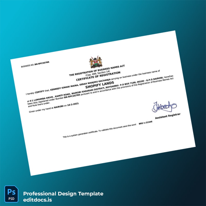 Kenya Business Registration Certificate Template (Word & PDF)