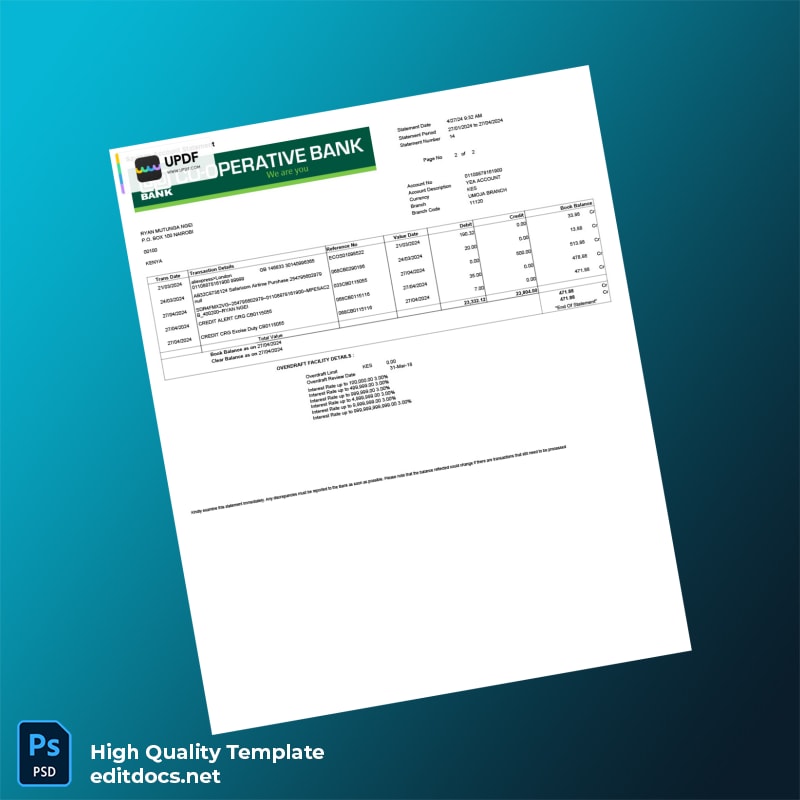 Kenya Cooperative Bank Statement Template: Designed for Your Professional Needs