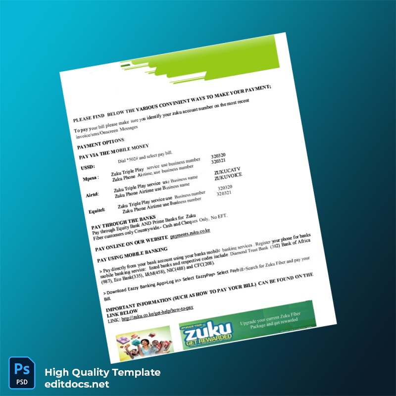 Kenya Wananchi Group K Ltd Editable Internet Bill Template