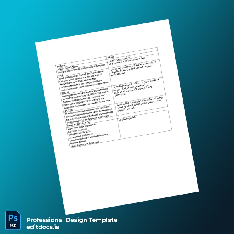 Streamline Your Business Registration with the Lebanon Commercial Registration Certificate Template (Word & PDF)