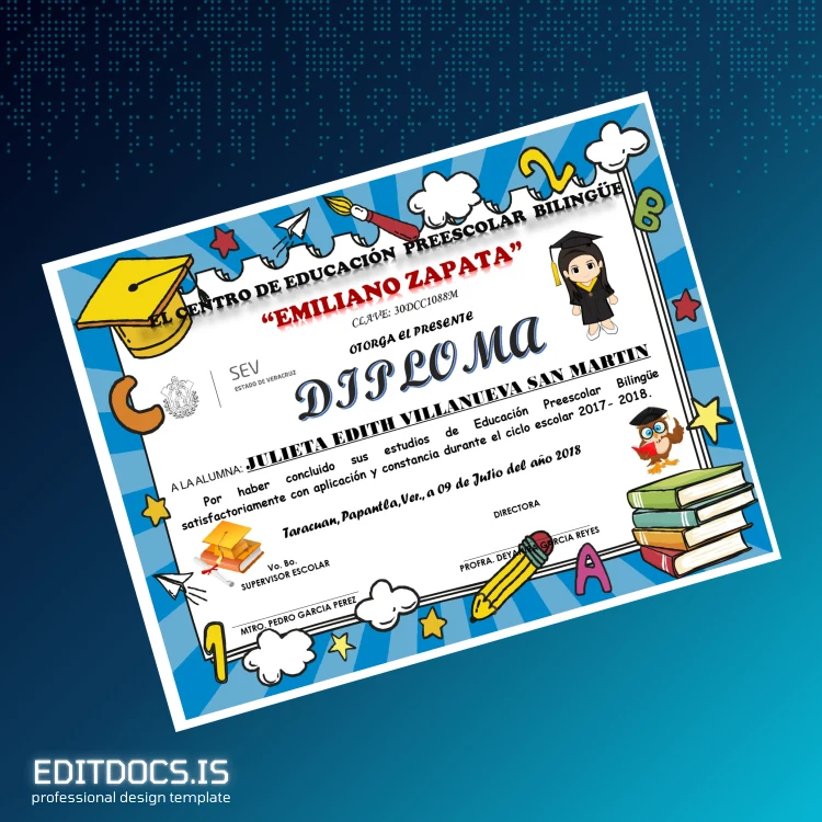 How to Create Your Mexico Emiliano Zapata Center Bilingual Preschool Diploma Template (Word & PDF) in Minutes