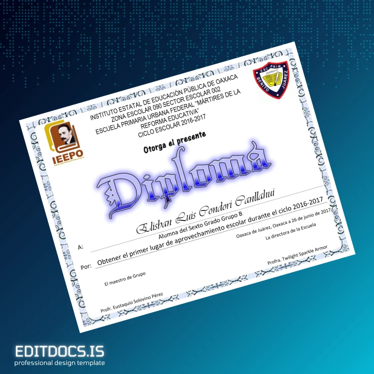 This professionally designed Mexico Escuela Primaria Urbana Federal Mártires de la Reforma Educativa Diploma Template (Word & PDF) offers an easy and efficient way to recreate your diploma with precision. Whether you need a replacement or want a backup copy for personal records, this editable diploma template allows full customization to suit your unique information while maintaining an authentic look.