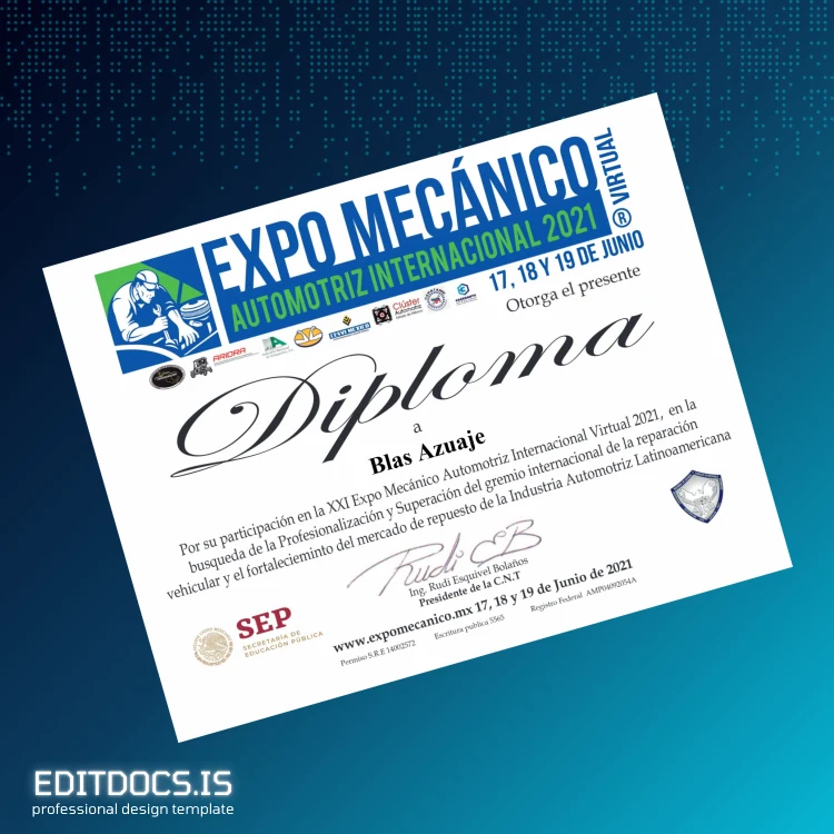 How to Create Your Mexico Expo Mecánico Automotriz International Diploma Template (Word & PDF) in Minutes