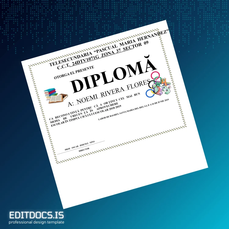 This professional editable diploma template provides a seamless solution to recreate or replace the Mexico Labor de Bagres Best Academic Performance Diploma Certificate quickly and efficiently. Ideal for individuals needing a blank diploma form or a replacement diploma template, this digital diploma download offers both Word and PDF formats for versatile use. Its customizable layout ensures you can adapt every detail with ease to fit your unique needs, whether for personal records or professional presentation.