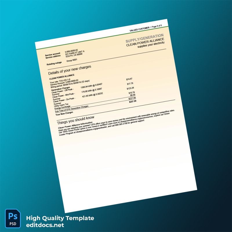 The N_A Editable Electricity Bill Template is a versatile and professional utility bill proof of address template, offered in both Word and PDF formats. Designed for quick customization and seamless usability, this template serves individuals and professionals needing a reliable, editable utility bill template to replace lost, stolen, or expired documents. Whether you require an online utility bill proof of address or a fillable utility bill template, this product simplifies the process while maintaining high-quality standards.