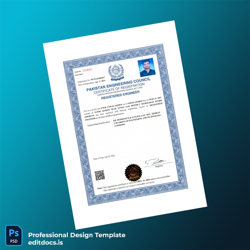 Pakistan Engineering Council Registration Certificate Template (Word & PDF)