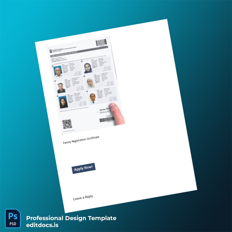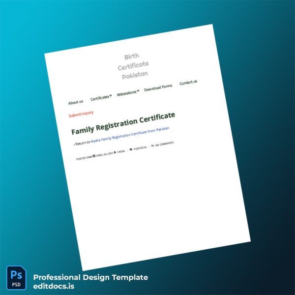 The Pakistan Nadra Family Registration Certificate Template (Word & PDF) provides a professional and fully editable solution for individuals and businesses requiring accurate and fast family registration documentation. This versatile template combines convenience with precision, allowing users to modify essential personal details effortlessly and generate a pristine, official-looking certificate suitable for various administrative and legal purposes.