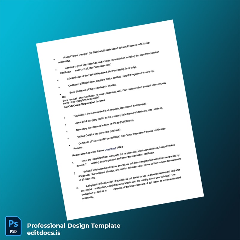 Stop worrying about document delays or costly processing errors. Empower your business with the Pakistan Pakistan Software Export Board Business Registration Certificate Template, and experience a smooth, professional, and reliable approach to managing your company’s registration documentation. Download your editable certificate now and maintain your business’s credibility and operational continuity with ease.