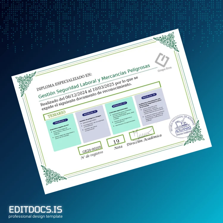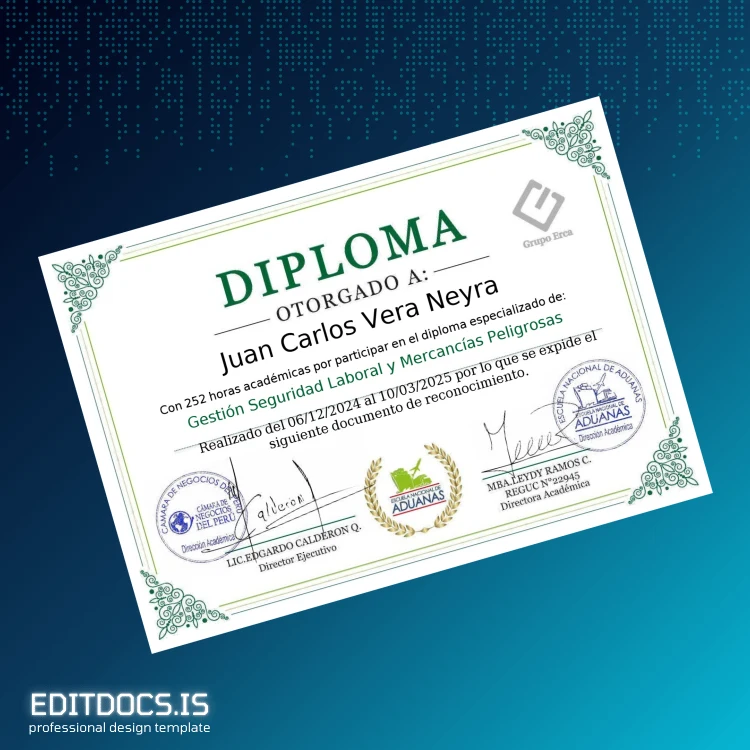 How to Create Your Peru National Customs School Diploma in Labor Security Management and Hazardous Goods Template (Word & PDF) in Minutes