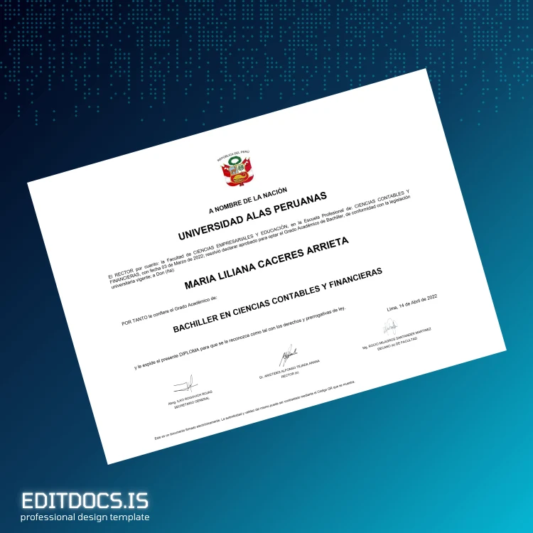 How to Create Your Peru Universidad Alas Peruanas Bachelor of Science in Accounting and Finance Degree Certificate Template (Word & PDF) in Minutes