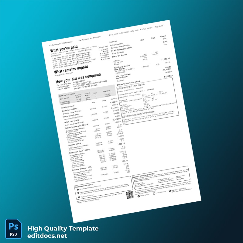 Philippines Meralco Editable Electricity Bill Template – Reliable Utility Bill Proof of Address Solution