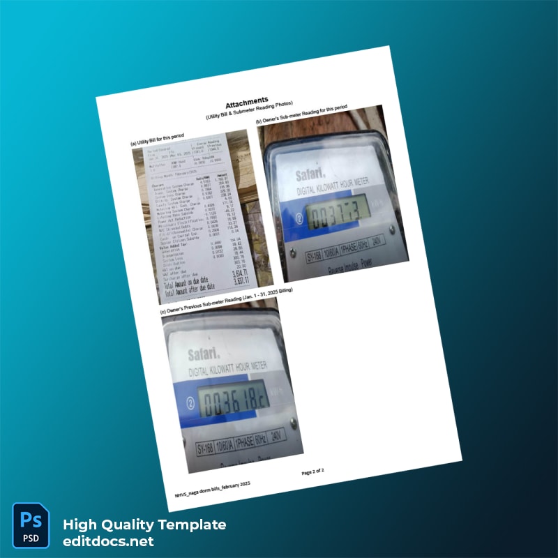 Philippines NHVS Site Engineer Editable Utility Bill Template in Word and PDF formats 2 page