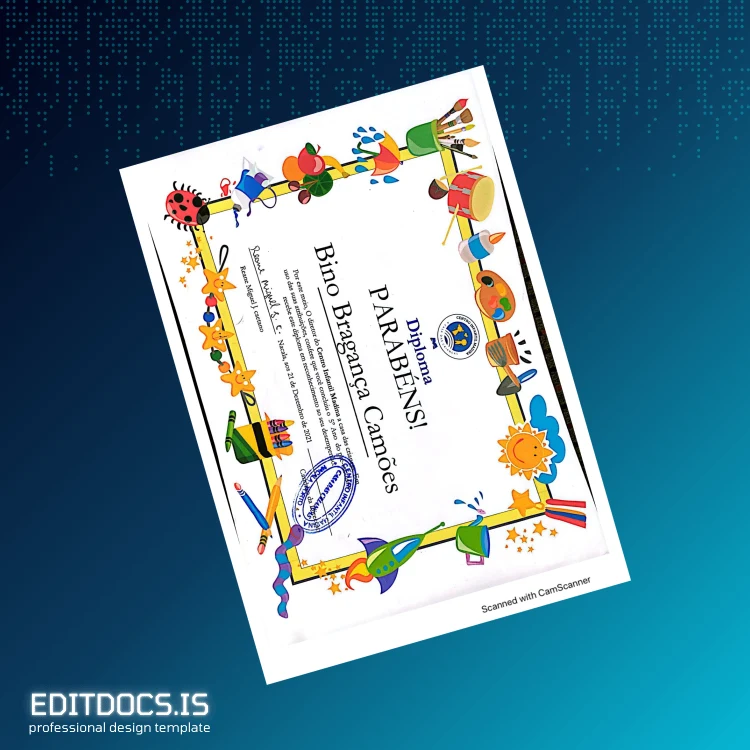 The Portugal Escolinha Madina Diploma Template (Word & PDF) provides a professionally designed, editable diploma certificate that you can customize effortlessly for personal or professional use. This digital diploma download offers a convenient solution for creating replacement diploma certificates with a novel design suited for various needs.