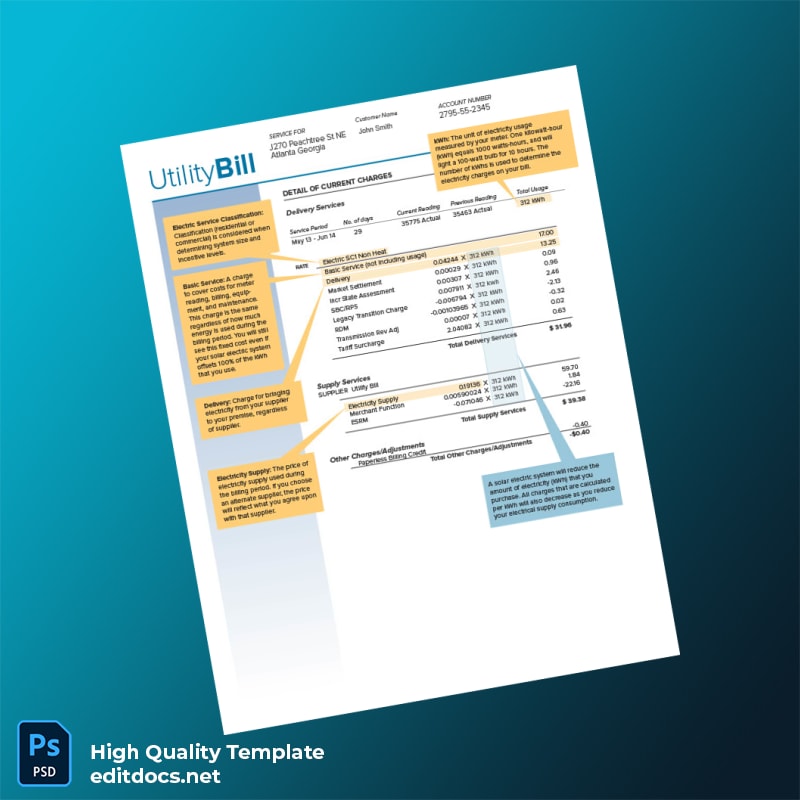 Residential Bill Editable Electricity Bill Template – Reliable Utility Bill Proof of Address