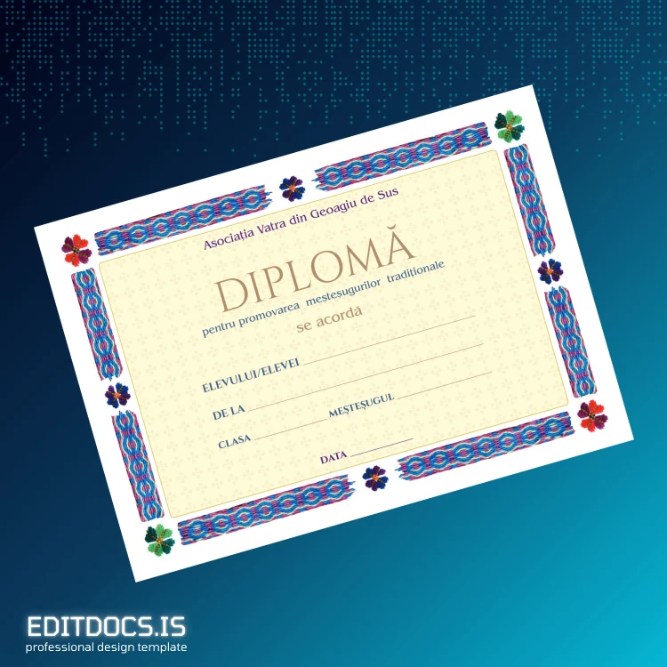 How to Create Your Romania Asociația Vatra din Geoagiu de Sus Diploma Template (Word & PDF) in Minutes