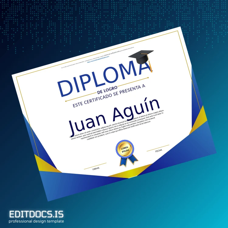 Our Spain Graduation Diploma Template offers a professional and easily customizable layout designed for users who need a reliable replacement or backup diploma. This digital file combines convenience with sophistication, ensuring you can swiftly edit all diploma details without any hassle. Perfect for educators, graduates, or institutions, this file supports both Word and PDF formats for versatile use. Explore our editable diploma template category for more options designed to meet all your document customization needs.