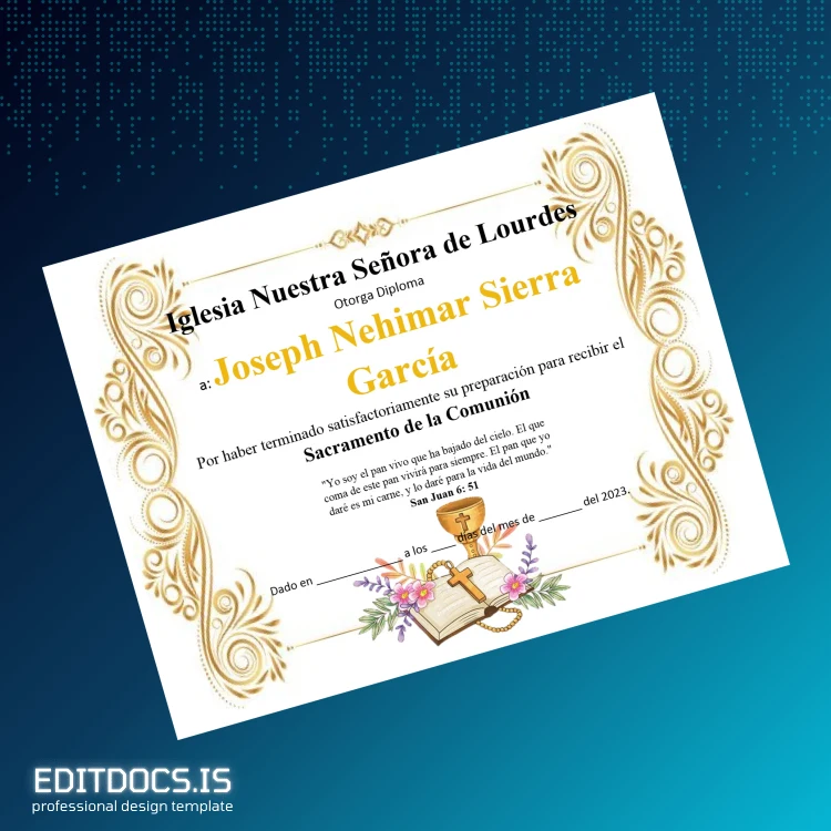 How to Create Your Spain Nuestra Señora de Lourdes First Communion Diploma Template (Word & PDF) in Minutes
