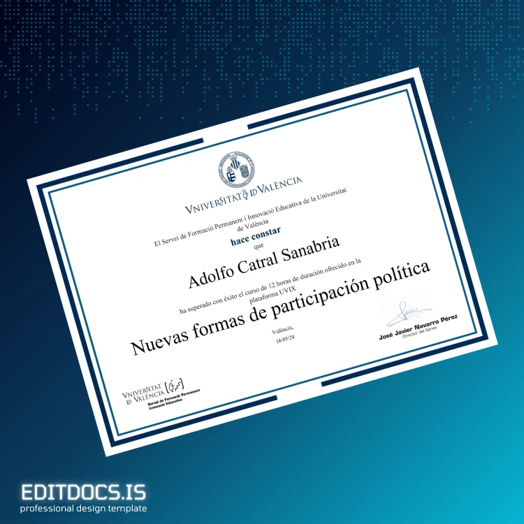 How to Create Your Spain University of Valencia Course Certificate in New Forms of Political Participation Template (Word & PDF) in Minutes