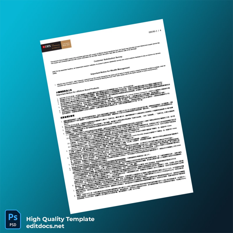 Don’t let documentation issues slow you down. Get your Taiwan DBS Bank Statement Template now and enjoy the peace of mind that comes with having professional, customizable templates at your disposal. Download your template today and step into a world where managing your statements is simple and efficient!