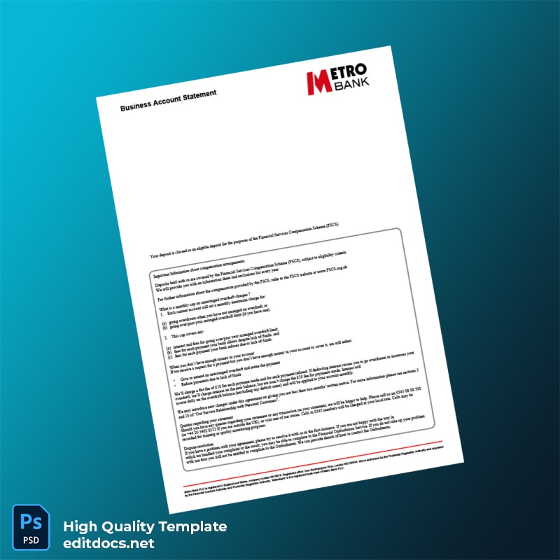 Be the first to review “UK Metro Bank Business Account Statement Template in Word and PDF formats 5 page”