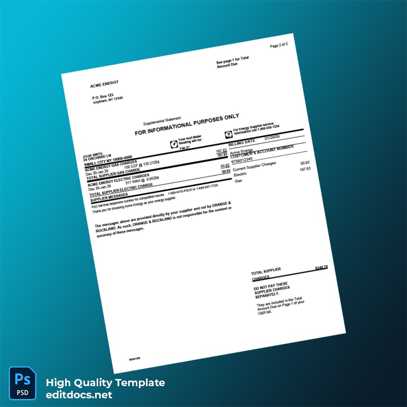 Discover the reliable and customizable United States ACME ENERGY editable utility bill template, available in both Word and PDF formats. Designed for professionals who need a quick, accurate, and editable utility bill proof of address template, this product ensures convenience and authenticity when you need to present valid utility documentation.