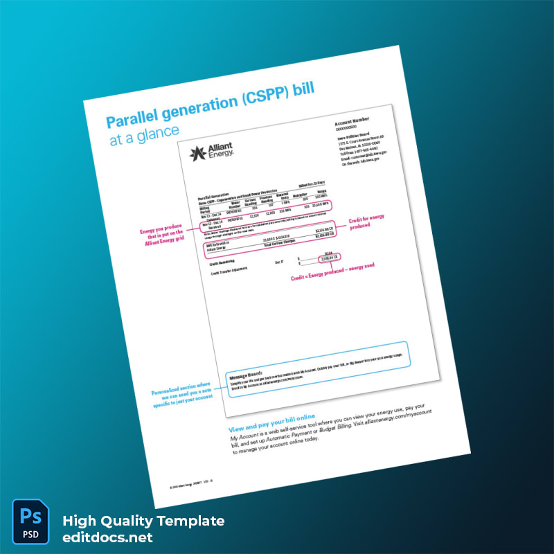 United States Alliant Energy Editable Utility Bill Template: Your Reliable Proof of Address Solution