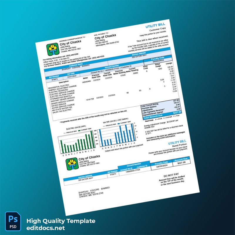 Don’t let missing or outdated documents slow your professional or personal progress. Download the United States City Of Chaska Editable Utility Bill Template now, and take full control over your proof of address needs with a tool designed to save time, reduce hassle, and maintain professionalism at every step.