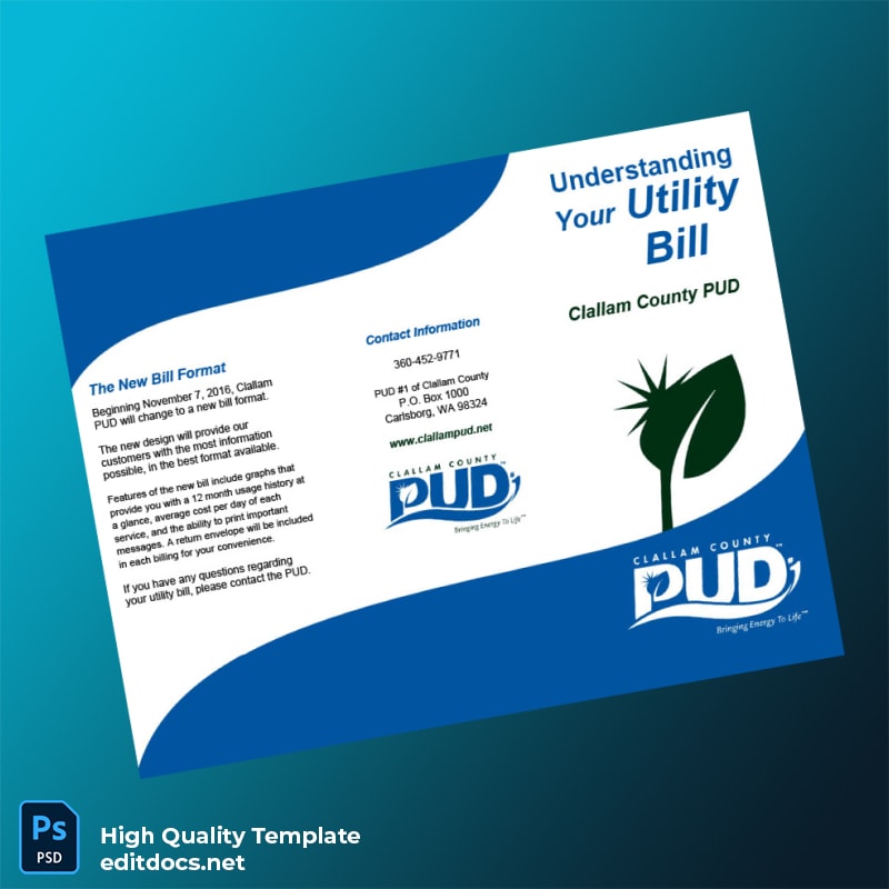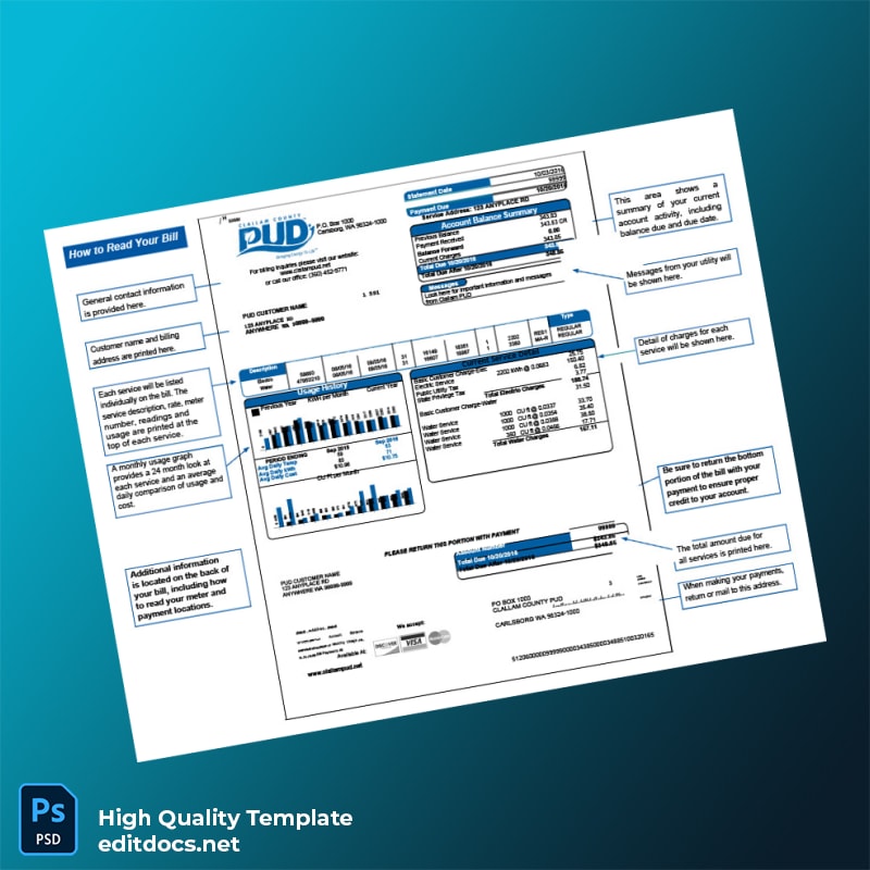 United States Clallam County PUD Editable Utility Bill Template in Word and PDF Formats