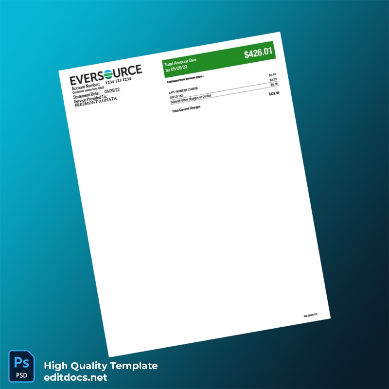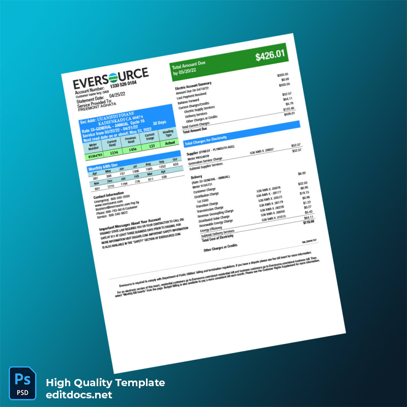 United States Eversource Editable Electricity Bill Template in Word and PDF Formats