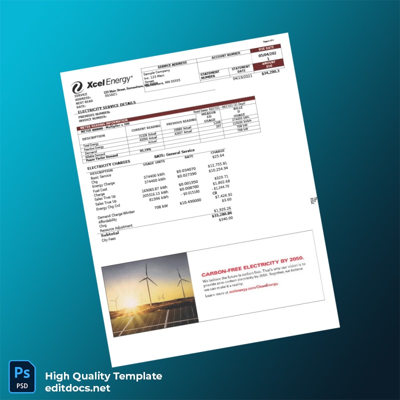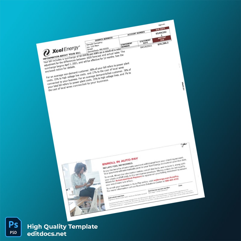 United States Northern States Power Company Editable Utility Bill Template in Word and PDF Formats