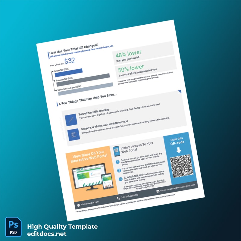 The United States OUC Editable Water Bill Template offers a reliable and professional solution for creating accurate and customizable utility bills. Designed for both individuals and professionals who need an editable utility bill proof of address template, this product simplifies the process with fully editable Word and PDF formats, allowing easy updates to suit your specific needs.